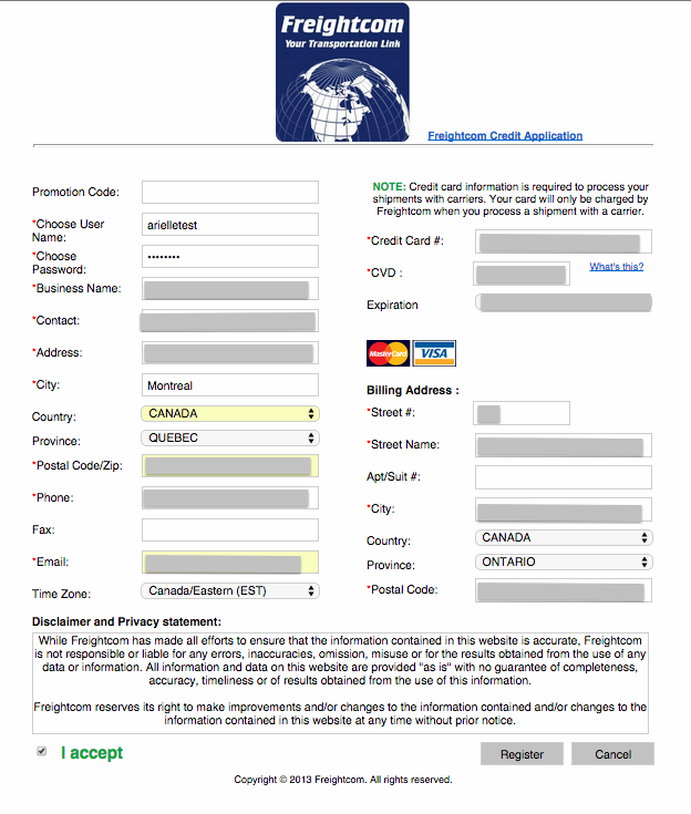 - Go to www.freightcom.com and click the "Create FREE Account Now!" button.
